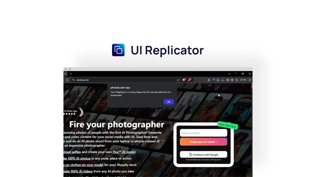 Recreating websites from scratch can be tedious and time-consuming. Whether you’re a developer, designer, or someone who frequently works with web interfaces, copying elements manually is frustrating. UI Replicator is here to eliminate that hassle, allowing you to replicate entire websites with just one click.